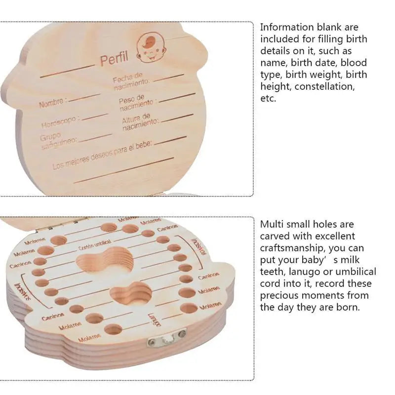 Features: 100% brand new and high quality. Lovely Baby Teeth Lanugo Hair Save Box. Tooth Box Wooden Baby Save Milk Teeth Lanugo Hair Wood Storage Box. Meaningful items for recording baby growth.